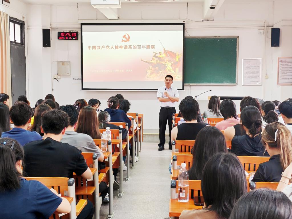 党委书记罗胜京以“中国共产党人精神谱系的百年赓续”为主题,为2025级服装与服饰设计专业、表演专业百余名本科新生讲授了秋季学期第一堂思想政治理论课。